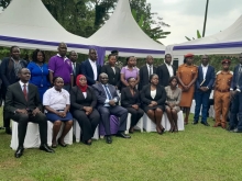 Judicial Officials and District leaders pose for a group photo after the Court Open Day session in kayunga District.